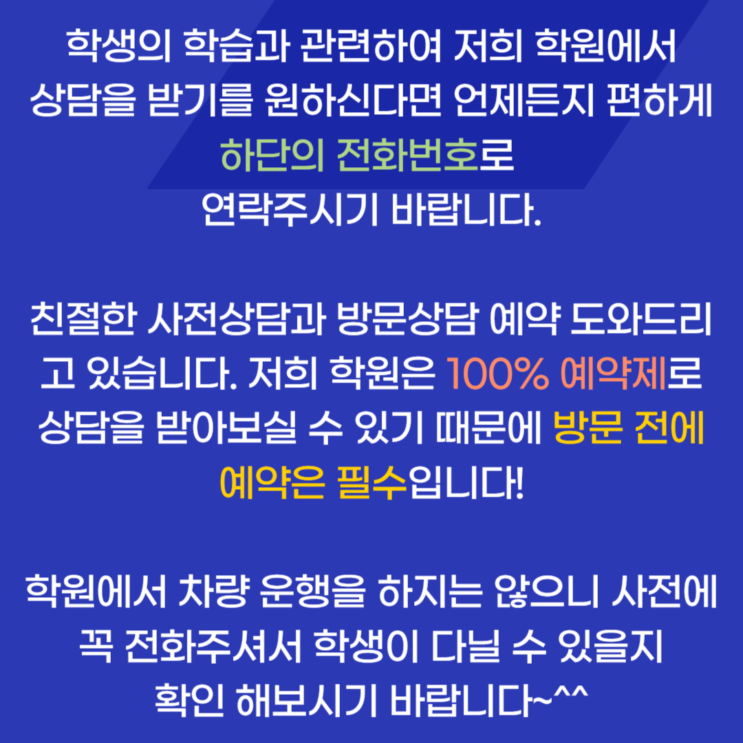 | 온천동 중학생 영어학원 동래역 동래대우1단지 초등학생 고등학생 수학학원 (0) | 2024.01.15 |
