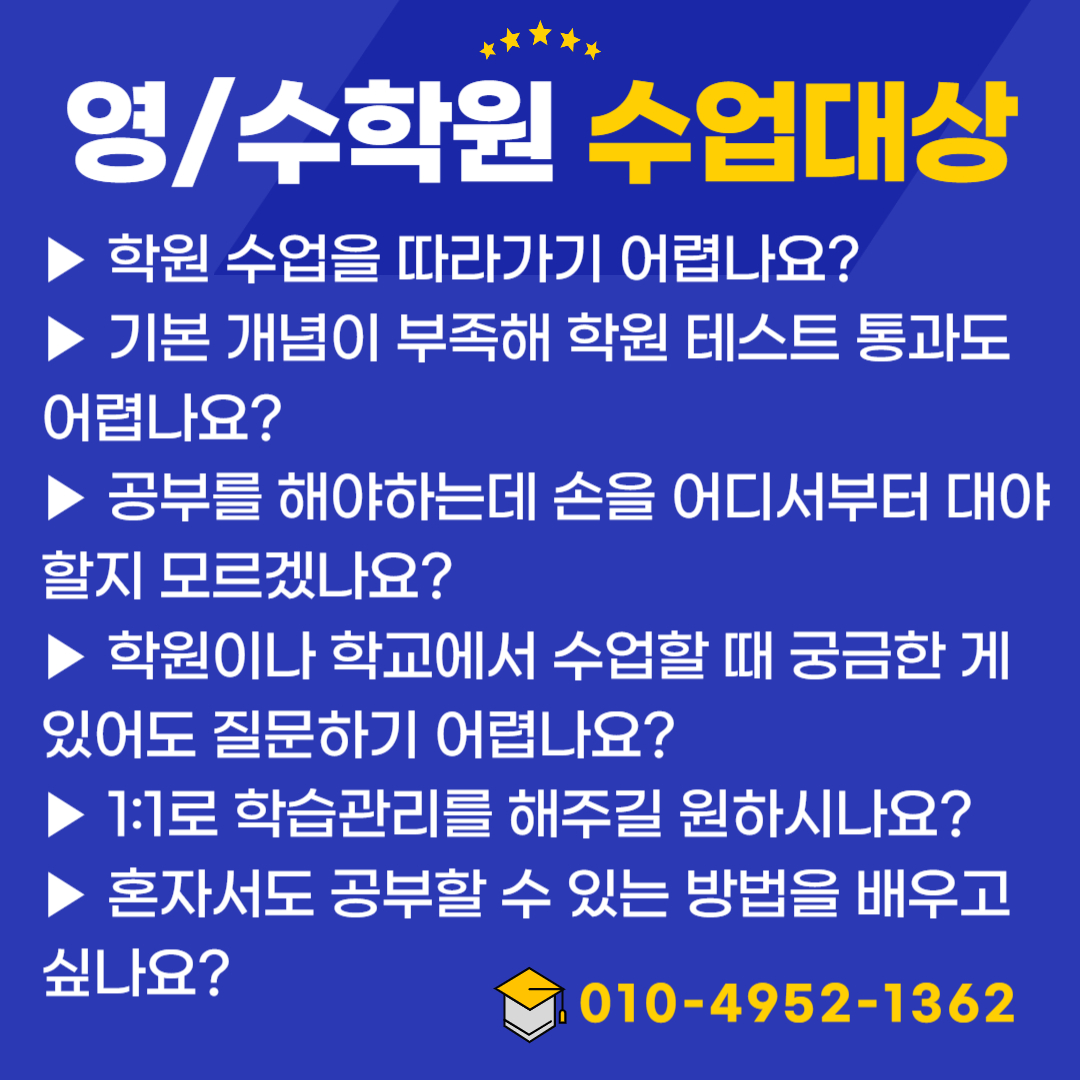 | 태평동 중학생 영어학원 버드내마을1단지 버드내초가까운 초등학생 고등학생 수학학원 (0) | 2024.01.23 |